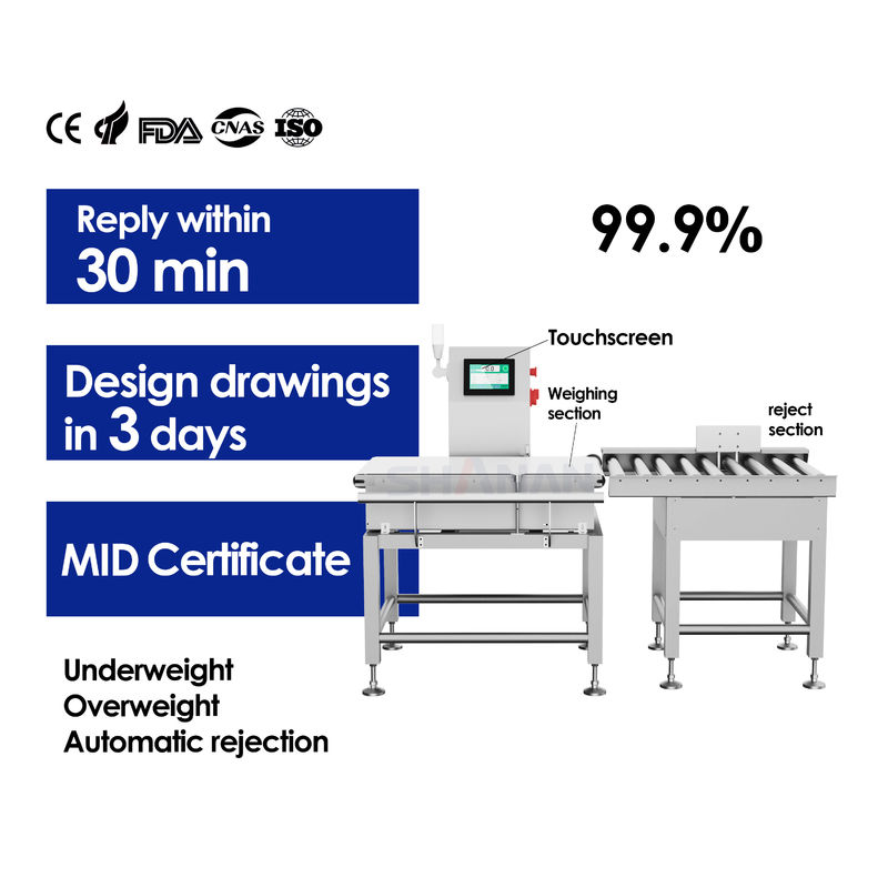 O Verificador de Peso Automático da SHANAN é uma máquina de pesagem altamente eficiente e precisa, projetada para uso em vários ambientes industriais. Com seus recursos avançados e desempenho confiável, tornou-se uma escolha popular entre as empresas da indústria alimentícia.